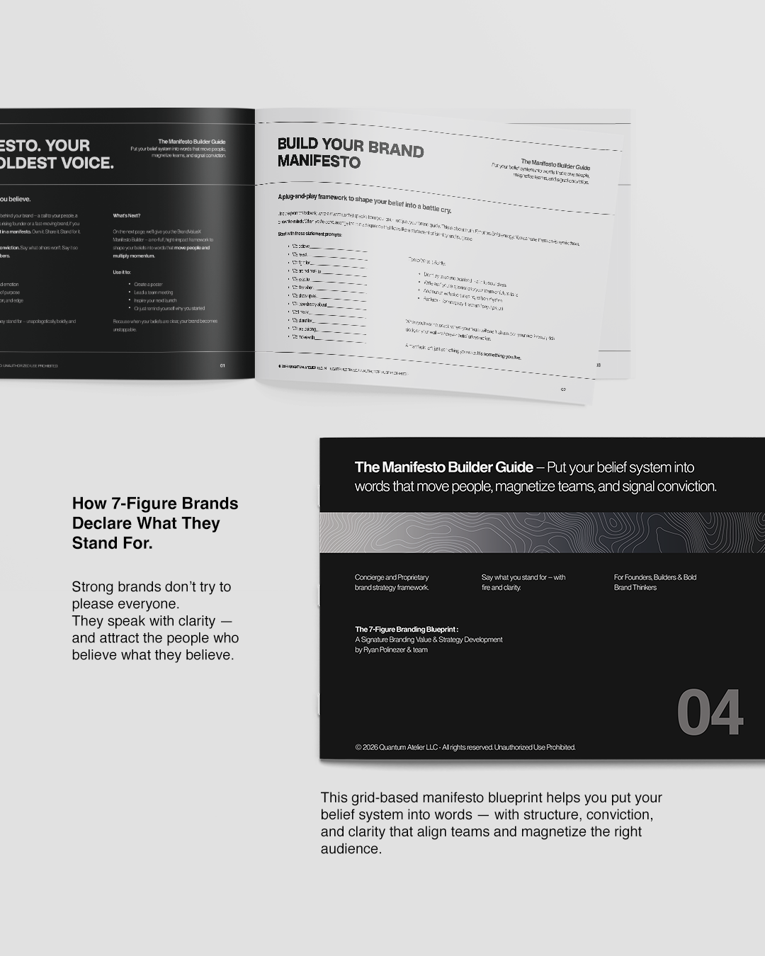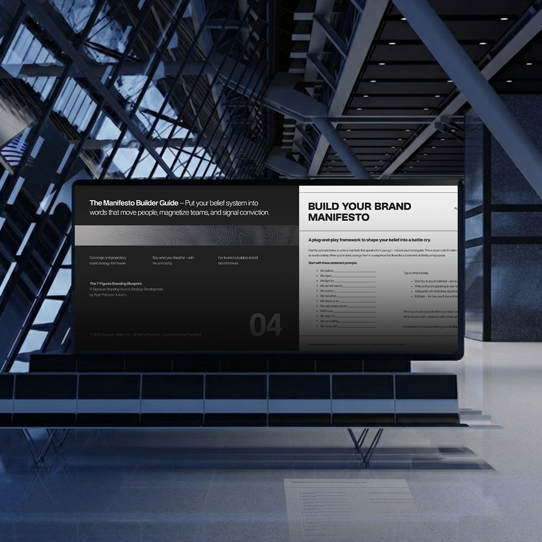The Manifesto Builder Guide helps you put your core convictions into words that move people — with clarity, courage, and rhythm.